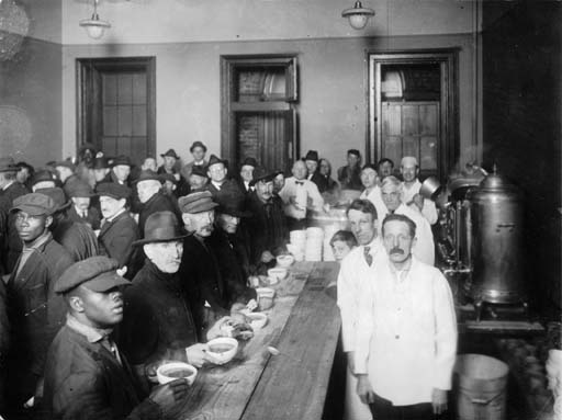 These men are in a Denver soup kitchen for unemployed men sometime in the 1920s. |
